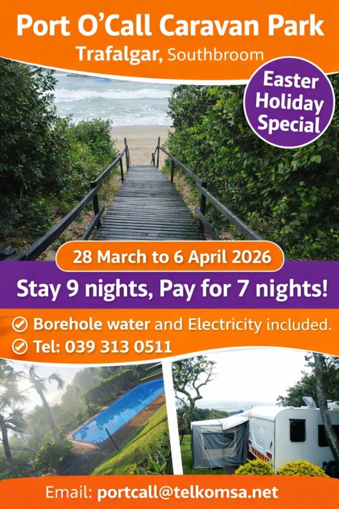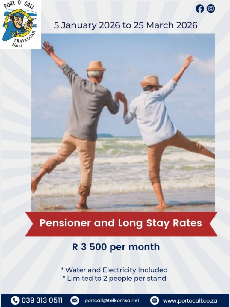 Port O’ Call is situated along the beachfront in Trafalgar, a small coastal town on the lower south coast of Kwazulu-Natal, midway between Margate to the north and Port Edward to the south. Two beach paths provide direct access to 5km of uninterrupted beach with Marina Beach and San Lameer to the north and Mpenjati Nature Reserve and Palm Beach to the south. Whilst the beach is part of the Trafalgar Marine Reserve normal recreational activities are allowed and only spear fishing and gathering of bait and crayfish is prohibited.
